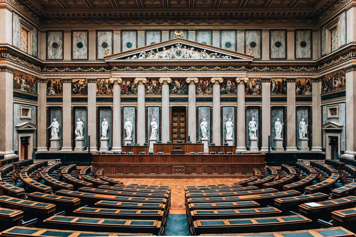 Praktisch gegenüber vom Volksgarten steht das Parlament. Es wurde in den letzten Jahren renoviert und Anfang 2023 wiedereröffnet. Mittlerweile kann man das Parlament daher auch wieder besichtigen.