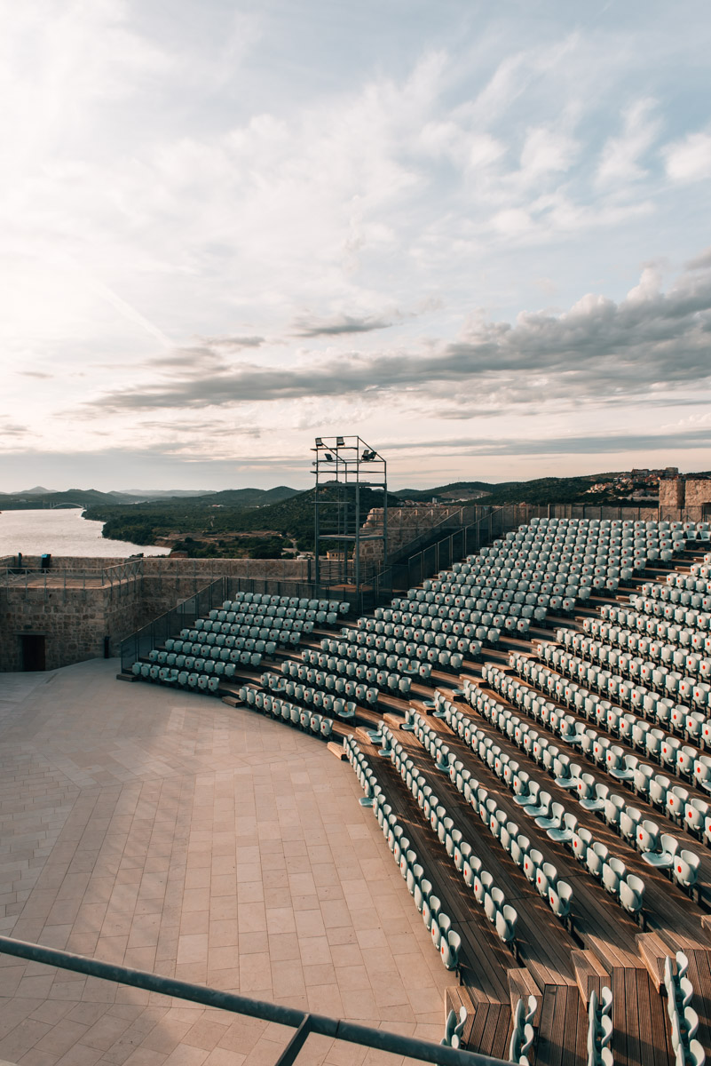 Anschließend gilt es einige Stufen und damit auch Höhenmeter zu bewältigen, ehe du den spektakulären Panoramablick über Šibenik genießen darfst. Auf der gigantischen Freiluftbühne finden im Sommer immer wieder Konzerte statt – was für eine tolle Kulisse!