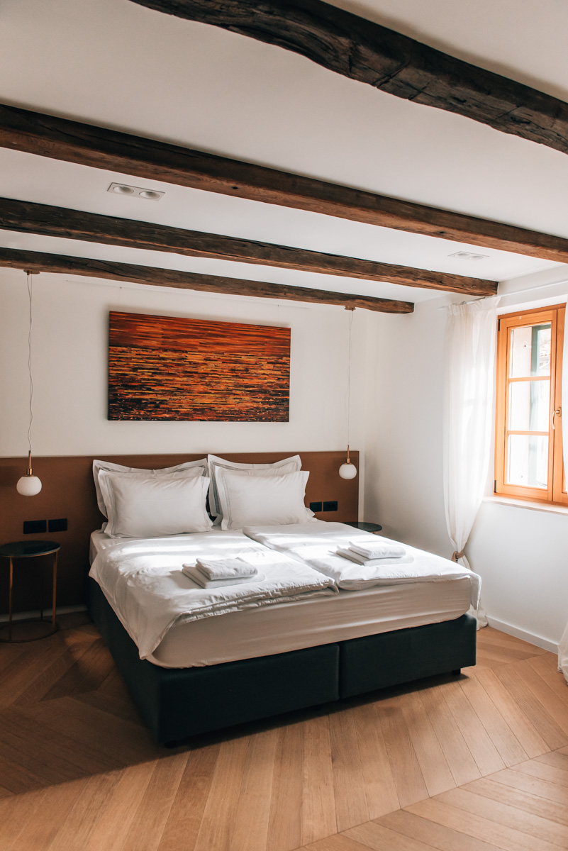 Du nächtigst hier in einem historischen, unglaublich behutsam und mit viel Liebe fürs Detail renovierten Steinhaus direkt in der Altstadt von Šibenik. Das Ambiente ist wirklich zum Verlieben. Die Zimmer versprühen pures Wohlfühlambiente. Unsere Wahl fiel auf die Kategorie „Deluxe Studio“. Wenn du dir etwas gönnen möchtest, dann entscheide dich am besten für das „Deluxe Apartment mit Terrasse“ – einfach herrlich!
