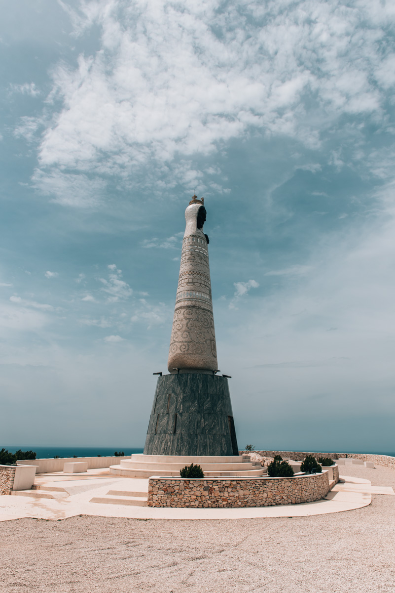 Der beste Blick auf Primošten: Den vermutlich besten Panoramablick auf die Halbinsel hast du vom Aussichtspunkt bei der Statue „Our Lady of Loretto“. Sie thront auf einem Hügel hoch über Primošten. Die Straße dorthin wurde mittlerweile asphaltiert. Von der Abzweigung auf der Hauptstraße sind es ungefähr 10 Minuten, ehe du den Aussichtspunkt erreichst. Den genauen Standort findest du in der Karte am Ende des Artikels.