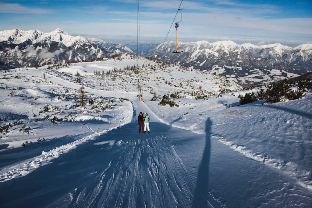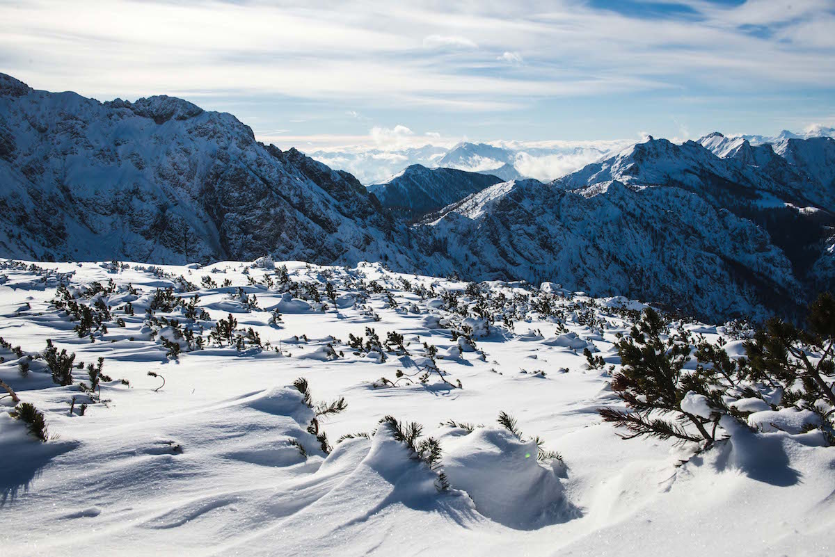Der höchste Punkt im Skigebiet ist der Schafkogel auf 2.000 Metern Seehöhe. Dort solltest du die Skier (bzw. das Snowboard) unbedingt kurz abschnallen, um den Panoramablick vom Aussichtspunkt zu genießen.
