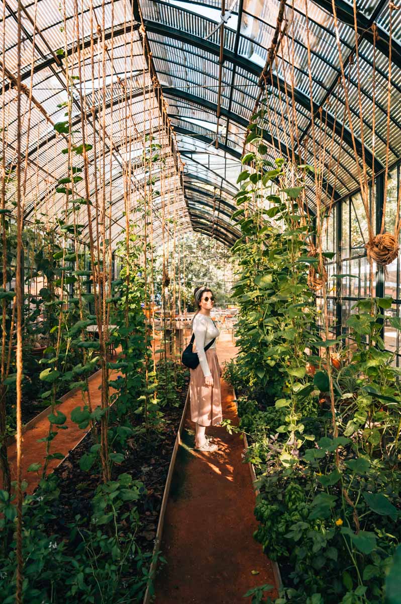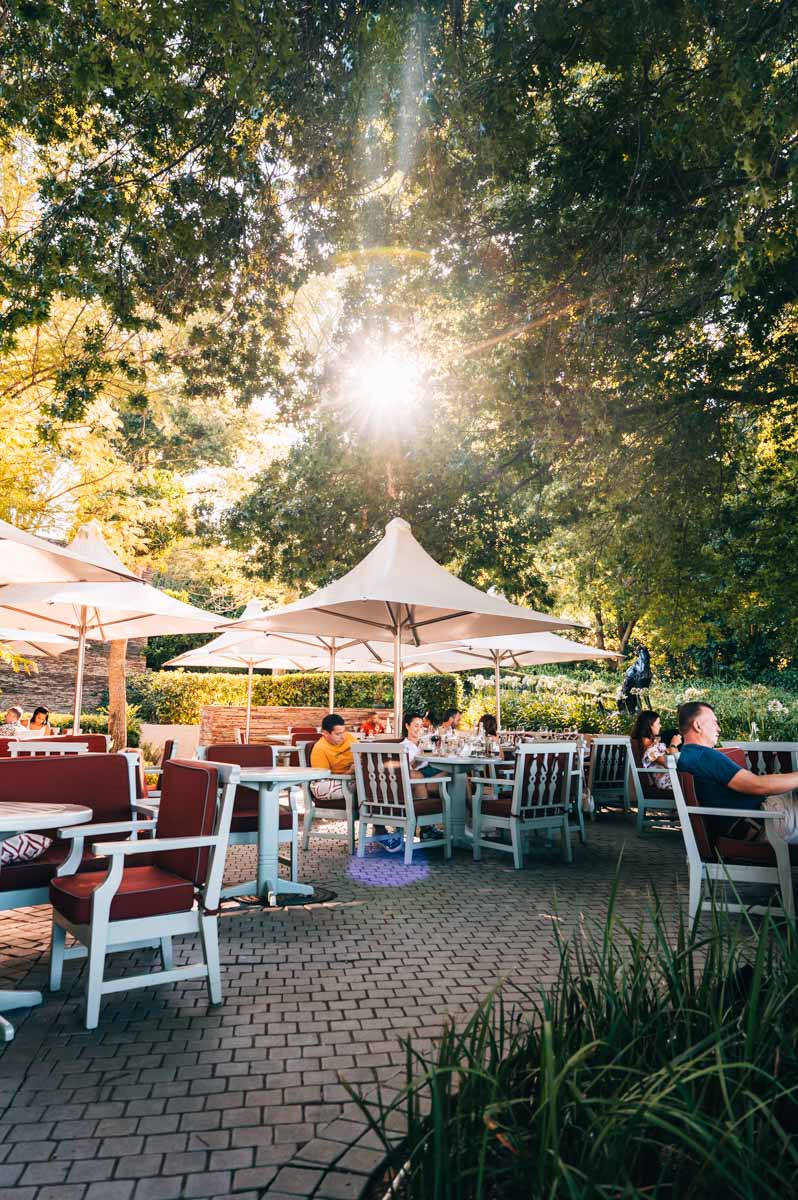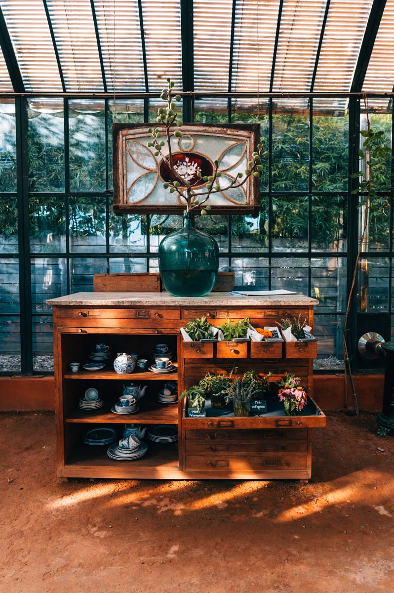 Am Ende des Gartens gelangst du zum Greenhouse, einem Café in Gewächshaus-Atmosphäre. (Es gibt auch ein Restaurant, das Babel, welches preislich recht gehoben ist.) Im Greenhouse bekommst du Kleinigkeiten zu essen. Wir haben hier eine Pause für Kaffee und Kuchen eingelegt – bzw. genauer gesagt für Cappuccino und Scones. (Die in Südafrika manchmal, so auch hier, mit Käse serviert werden.)