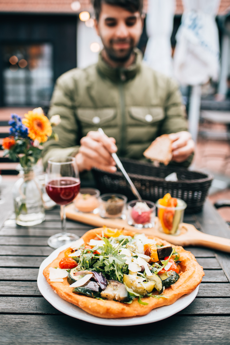 Serviert werden regionale, bodenständige Gerichte mit modernem Pfiff. Wir etwa hatten das hausgemachte Langos (die ungarische Grenze ist ja nicht weit) mit mediterranem Grillgemüse. Dazu genießt man zum Beispiel ein Gläschen Uhudler.