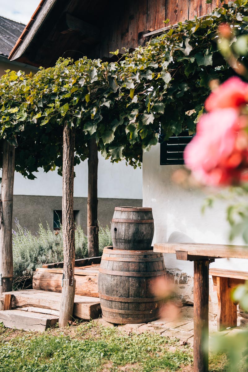 Im hübschen Innenhof des Arkadenheurigen in Bad Tatzmannsdorf sitzt man an lauschigen Abenden wirklich sehr nett. Der Arkadenheuriger gehört zum Freilichtmuseum Dazumal (siehe voriges Kapitel), insofern bietet sich eine Einkehr im Anschluss an den Museumsbesuch bestens an.