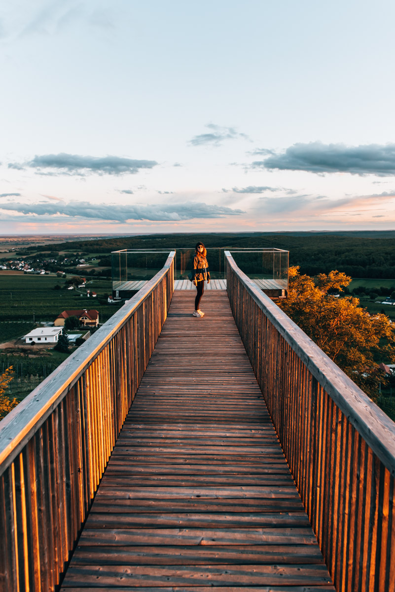 Du solltest unbedingt auch die Treppen in die Höhe steigen. Von der obersten Plattform genießt du nämlich einen sagenhaften 360-Grad-Blick. Bei guter Sicht kannst du sogar den Schneeberg und die Konturen des Neusiedler Sees erkennen.