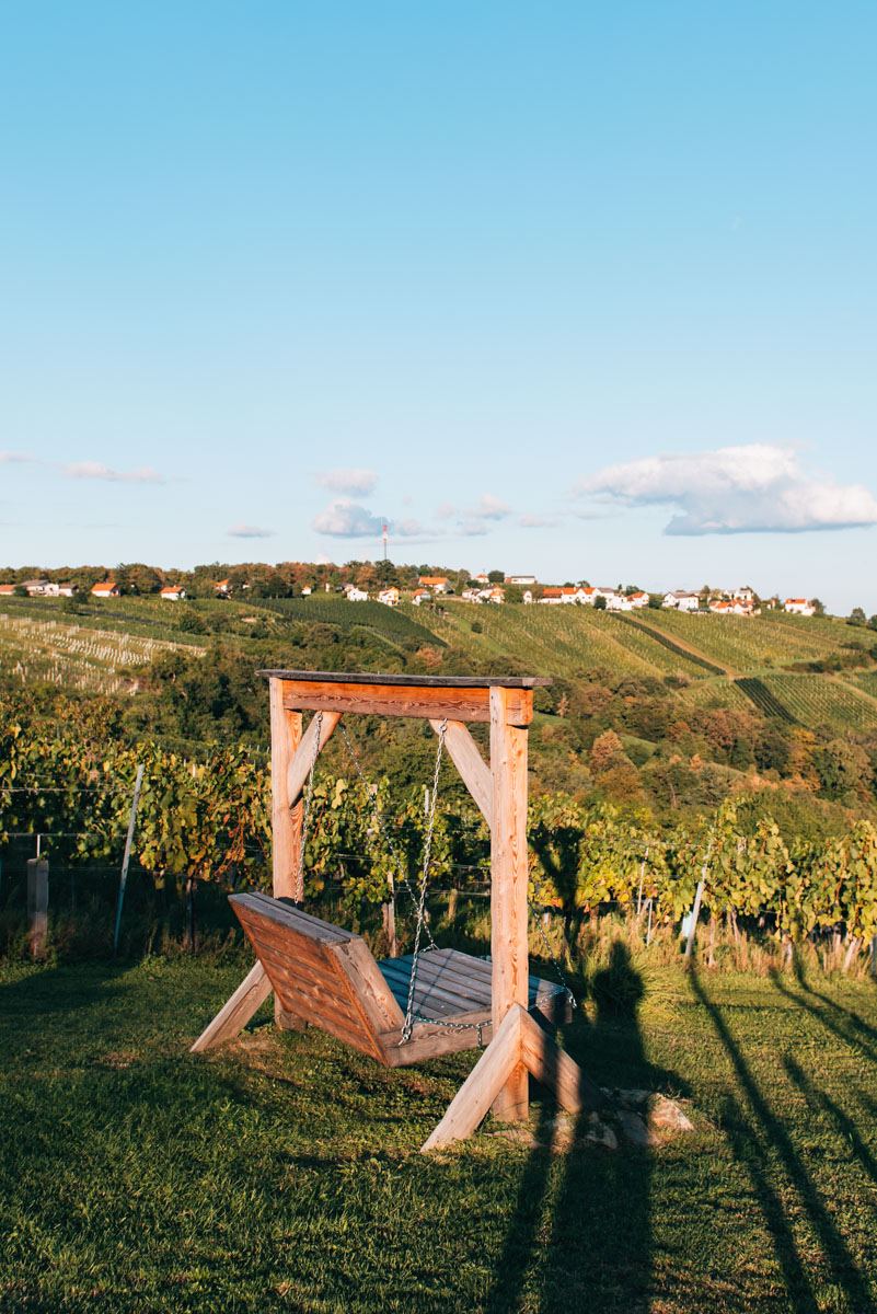 Einen Spaziergang durch dieses wirklich sehr authentische und sehenswerte Weinbaugebiet können wir wärmstens empfehlen. Wer mehr sehen möchte, kann auch gleich den ca. 1,5 Stunden (5 Kilometer) langen Rundweg 8 entlang wandern. Hier kommst du auch an dem sehr netten Aussichts-Bankerl vorbei, das auf unserem Foto zu sehen ist. Hier findest du die genaue Route: Csaterberg Rundweg.
