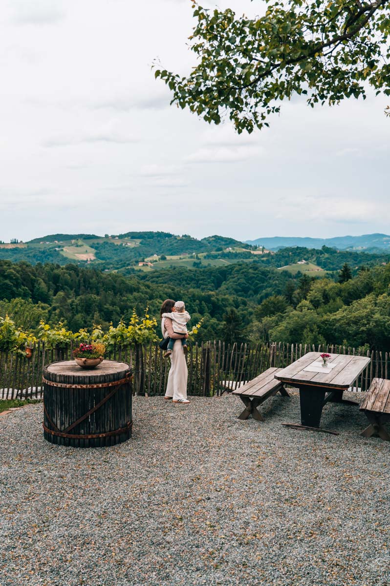 Man sitzt hier in einem tollen Garten im Schatten der großen Bäume. Auch mit Kind ist es hier perfekt, denn es gibt viel Platz zum Toben. Unser Fazit: Etwas abseits der bekanntesten Sehenswürdigkeiten der Südsteiermark gelegen, doch der Abstecher lohnt sich definitiv.