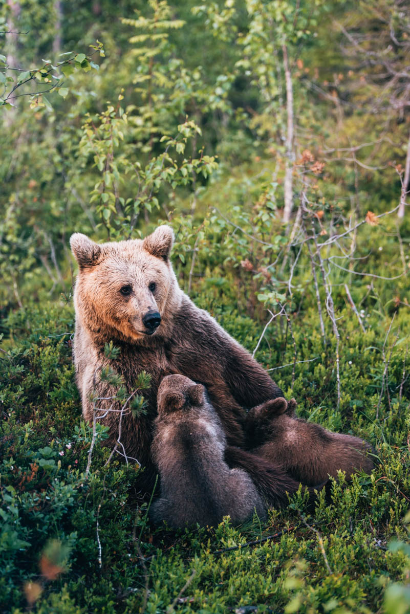Die schlechte: Damit wir Menschen einen Bären vor die Linse bekommen, müssen sie angelockt werden. Und das passiert überall (nicht nur in Finnland) mit Essen. Eine Bärenbeobachtung ist also in gewisser Weise auch ein Eingriff in die Natur.