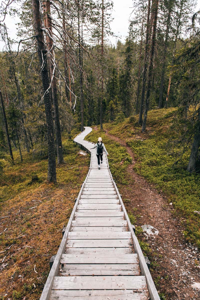 Die beliebteste Art und Weise den Nationalpark zu erkunden, ist zu Fuß. Du kannst aus den verschiedensten Wanderrouten wählen – von kurzen, Rollstuhl-tauglichen Spaziergängen bis hin zu anspruchsvolleren Touren ist alles dabei. Hier findest du eine Übersichtskarte: Hossa-Nationalpark.