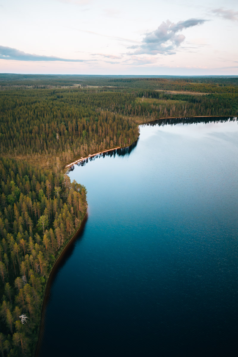 - Wilde, unberührte Natur: Suomussalmi gehört zur sogenannten „Wilden Taiga“, einem unberührten Gebiet im Osten Finnlands an der Grenze zu Russland. Die Region ist sehr abgeschieden. Oft fährt man wirklich kilometerlang durch „Niemandsland“ und sieht nichts außer Wälder und Seen.