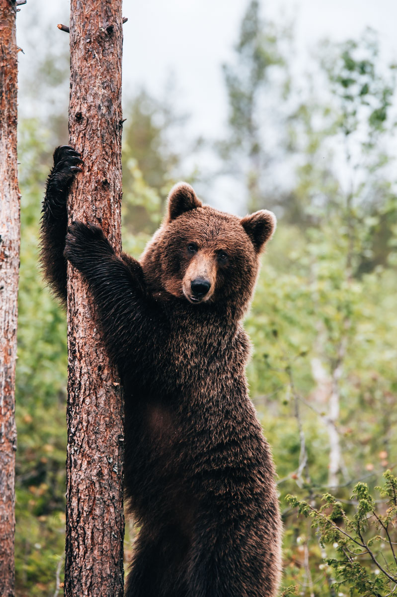 Der Moment, wenn plötzlich ein gewaltiger Braunbär wie aus dem Nichts vor dir auftaucht, so nah, dass du ihn sogar schmatzen hören kannst – ohne Worte! Der Osten Finnlands ist eines der letzten Wildnisgebiete Europas, in denen du diesen gewaltigen Tieren in ihrem natürlichen Lebensraum nahe kommen kannst.