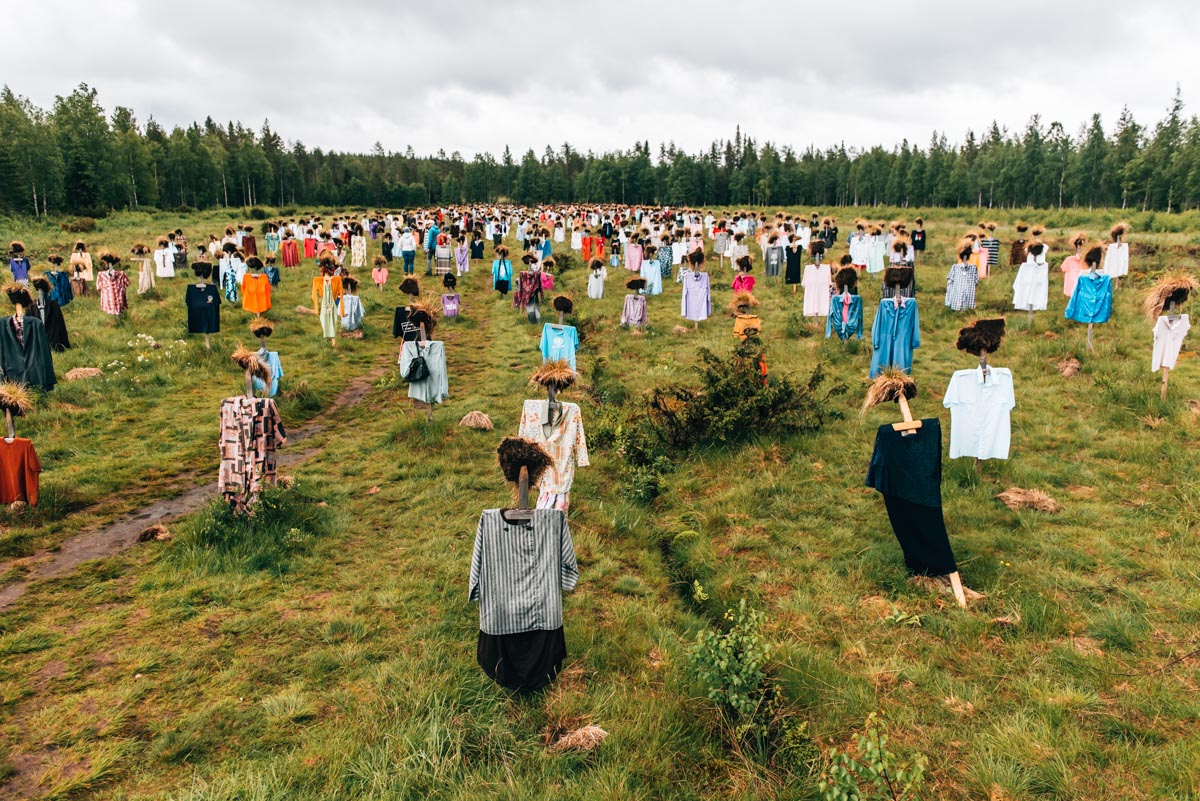 Eine Kunstinstallation der besonderen Art und eine der wohl ungewöhnlichsten Sehenswürdigkeiten in Suomussalmi sind die sogenannten Silent People. Direkt an der Hauptstraße erwartet dich ein Meer aus Vogelscheuchen-ähnlichen Figuren.