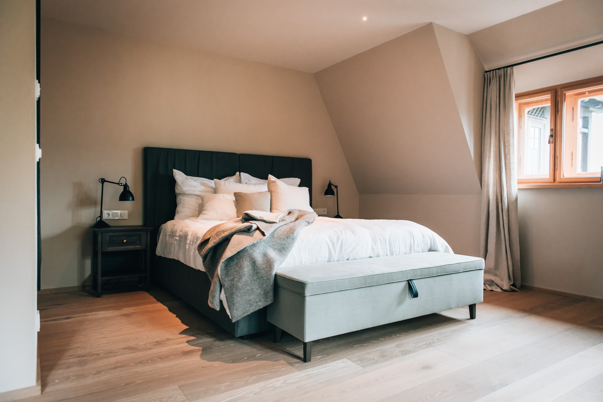 Die Zimmer sind dermaßen hochwertig ausgestattet, dass wir das eine oder andere Mal wirklich gestaunt haben. Beispielsweise ist die Bettwäsche aus Leinen (fühlt sich ganz wunderbar an!), dazu gibt’s eine riesige Auswahl an Kräuter-Kissen. Apropos Bett: Das ist überhaupt ein Traum. Wir haben ganz ausgezeichnet geschlafen. (Und wir würden uns als anspruchsvoll bezeichnen.)