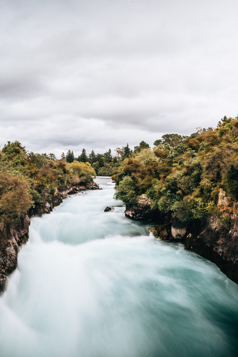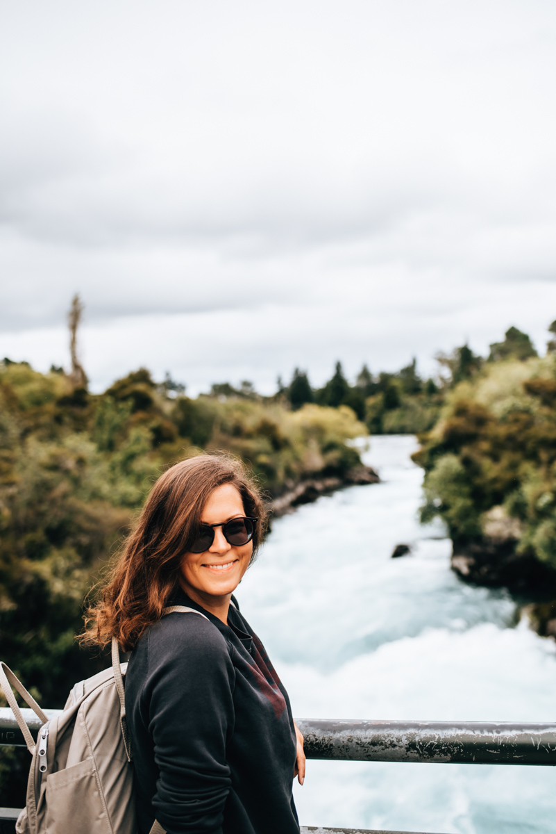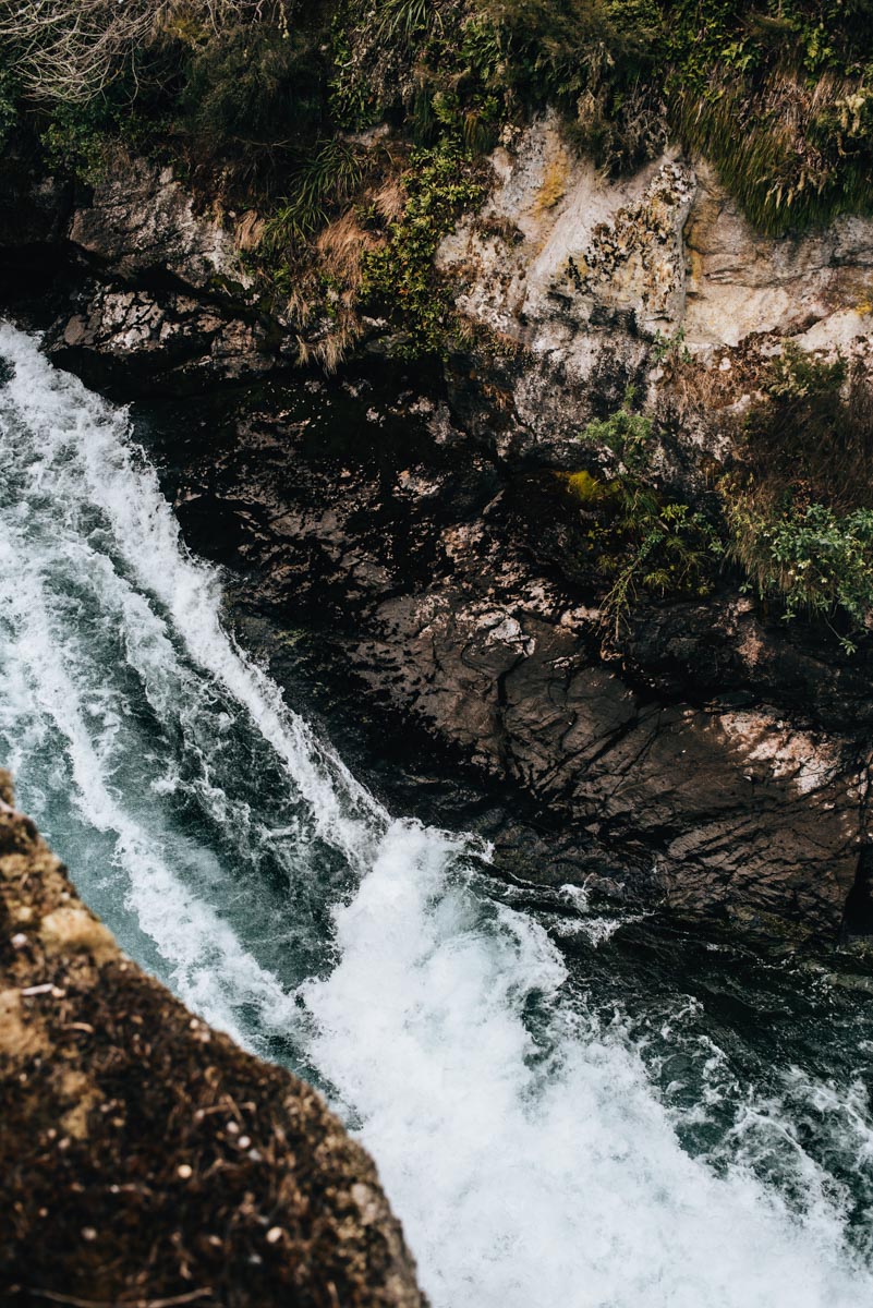 Stundenlang könnten wir dabei zusehen, wie das klare, hellblaue Wasser der Huka Falls durch die Schlucht peitscht und anschließend mit einem tosenden Geräusch in die Tiefe stürzt. Die spektakulären Huka Falls sind zurecht eine der meistfotografierten Sehenswürdigkeiten in Neuseeland.