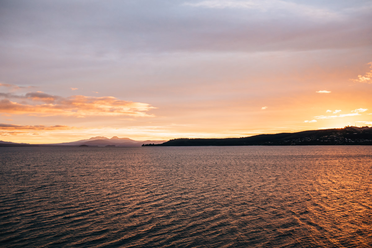 Wir hatten richtiges Glück. Denn, obwohl das Wetter während unserer Zeit in Taupo eher mau war, riss der Himmel eines Abends auf und wir durften einen spektakulären Sonnenuntergang am See erleben. Den riesigen und häufig fotografierten Taupo-Schriftzug könnt ihr übrigens kaum verfehlen. Er befindet sich an der Strandpromenade entlang der „Lake Terrace“ auf der Höhe zwischen KFC und McDonald’s (deren Filiale sich in Taupo übrigens zum Teil in einem alten Flugzeug befindet).