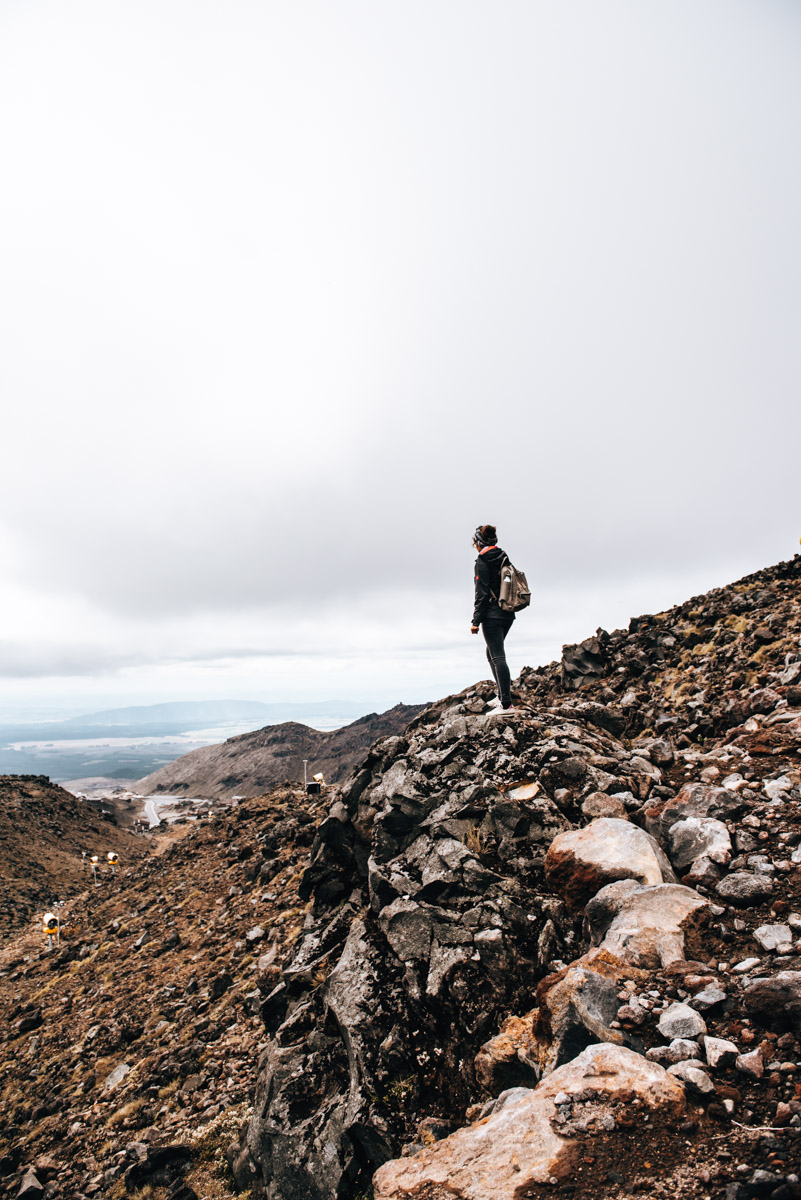 Wir haben unser Auto am Parkplatz beim Sessellift in Whakapapa abgestellt. Leider war bei unserem Besuch der zweite und längere der beiden Sessellifte („Waterfall Express“), der bis zum Knoll Ridge Café führt, außer Betrieb. Der hätte uns nämlich in kurzer Zeit auf 1800 Höhenmeter gebracht. Mit dem ersten Sessellift („Rangatira Express“) hätten wir fahren können, doch sogar die Mitarbeiterin der Liftanlage hat uns davon abgeraten, da man zu Fuß auch nur eine halbe Stunde benötigt. Daher sind wir einfach so losgewandert und waren innerhalb kürzester Zeit mutterseelenallein in einer verrückten Vulkanlandschaft.