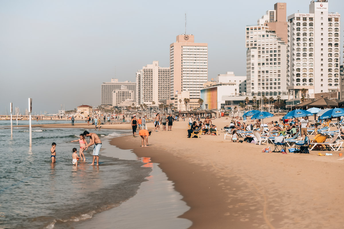 Tel Aviv ist mit kilometerlangen Sandstränden gesegnet. Hinzu kommt, dass die Temperaturen selbst im Winter relativ mild sind. Wir waren im Dezember in Tel Aviv und wie du siehst: Die Menschen sind selbst da noch ins Wasser gegangen. Kein Wunder – immerhin hatten wir an diesem Tag angenehme 25 Grad Außentemperatur.