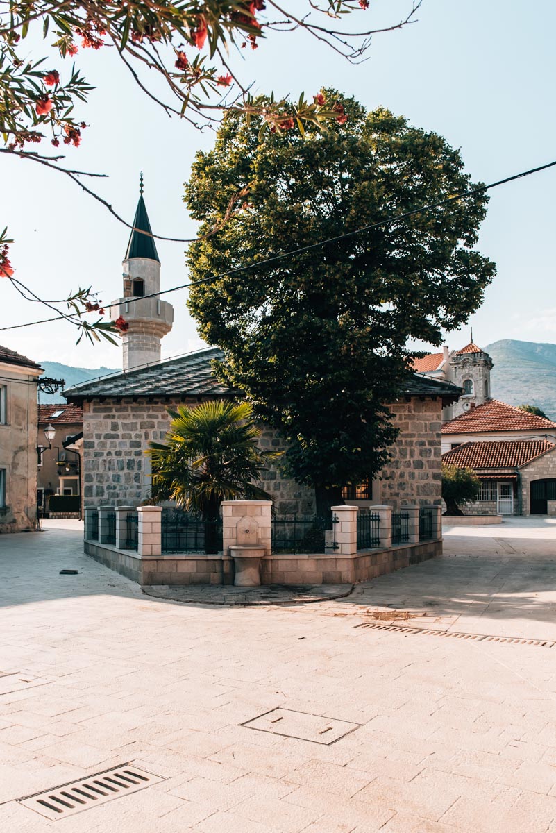 Innerhalb der historischen Stadtmauern befindet sich die Altstadt von Trebinje. Sie ist über mehrere Tore zugänglich und beherbergt neben vielen Cafés und Bars auch die zwei bekanntesten Moscheen von Trebinje.