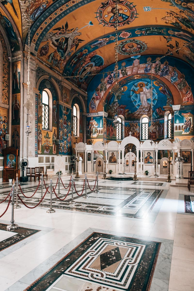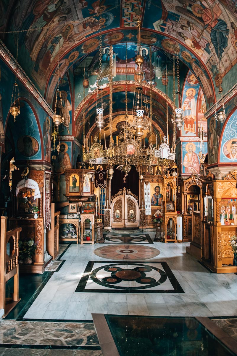 Wichtig: Achte auf angemessene Kleidung (Schultern und Knie bedeckt). Notfalls werden vor Ort aber auch Tücher zum Überziehen zur Verfügung gestellt. Im angrenzenden Souvenir-Shop kannst du u.a. Weine und Edelbrände aus eigener Erzeugung kaufen. (Das Olivenöl stammte leider aus Griechenland, sonst hätten wir es mitgenommen.)
