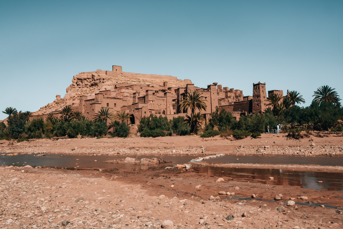 In Ait Ben Haddou wartet eines der berühmtesten Fotomotive in ganz Marokko auf dich. Ait Ben Haddou ist eine sogenannte Kasbah, eine befestigte Stadt aus Lehm. Sie thront auf einem Hügel und ragt inmitten der kargen Landschaft eindrucksvoll in die Höhe. Ait Ben Haddou ist nicht nur UNESCO-Weltkulturerbe, sondern auch Filmkulisse für unzählige Hoolywood-Produktionen.