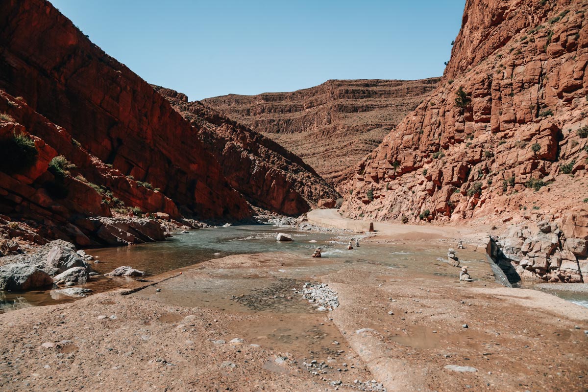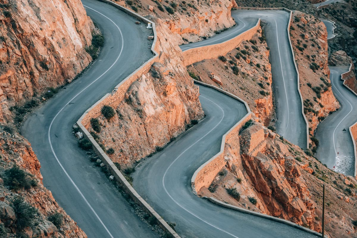 Die Route führt dich weiter nach Skoura, eine kleine Stadt, die für ihre riesige Palmenoase bekannt ist. Beim Ort Boumalne du Dadès zweigst du anschließend Richtung Norden ab. Hier startet die eigentliche Dadesschlucht. Die Strecke ist unglaublich spektakulär und am liebsten möchte man ständig stehen bleiben, um ein Foto zu machen.
