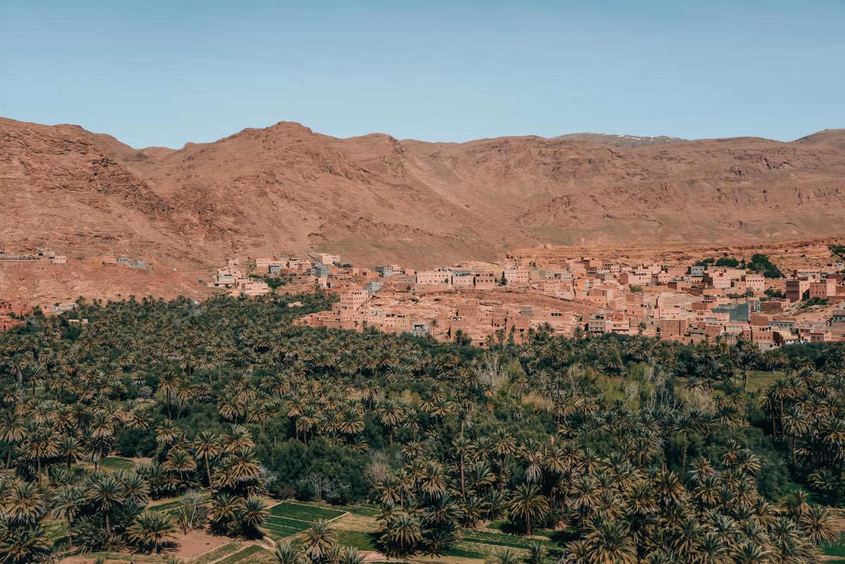 Der Roadtrip führt dich von der Dadesschlucht weiter nach Tinghir. Hier solltest du definitiv kurz anhalten, um die wunderschöne Oase zu bestaunen. In Tinghir zweigt die Straße Richtung Norden in die berühmte Todraschlucht ab.