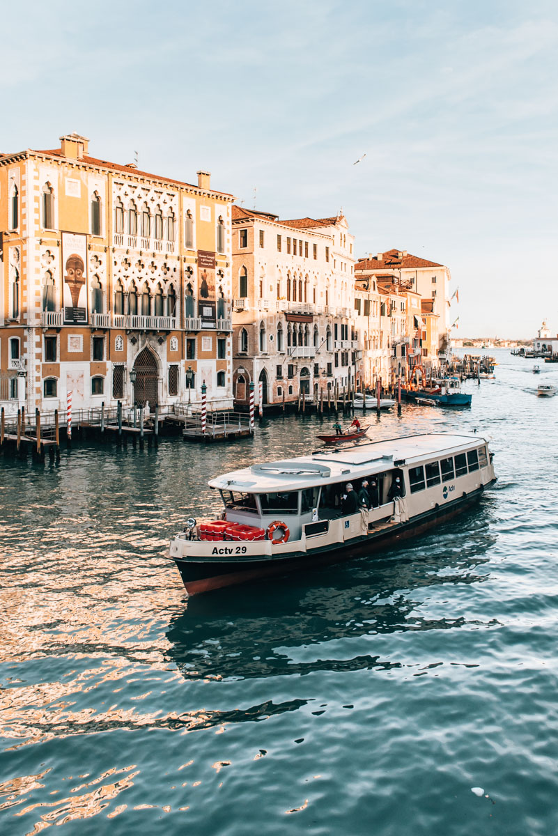 Für etwas weitere Distanzen kannst du das Vaporetto nutzen, den Wasserbus. Die Vaporetti sind sozusagen das öffentliche Verkehrsnetz in Venedig. Es verkehren mehrere Linien in regelmäßigen Abständen. Mit dem Vaporetto erreichst du beispielsweise die Parkgaragen am Stadtrand oder auch die benachbarten Inseln Murano und Burano.