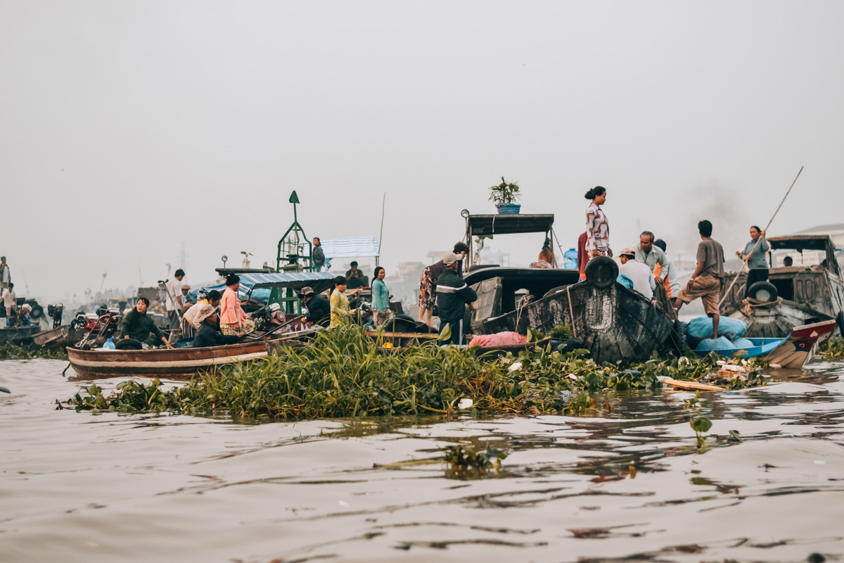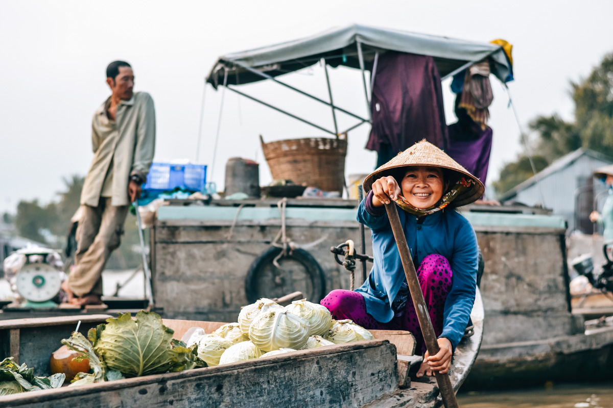 Eines der Highlights im Mekong Delta ist ein Besuch der schwimmenden Märkte. Zwei der bekanntesten schwimmenden Märkte findest du in der Nähe von Can Tho, der größten Stadt im Mekong Delta. Ebenfalls sehr gut gefallen hat es uns in der sogenannten Kokosnuss-Provinz Ben Tre.