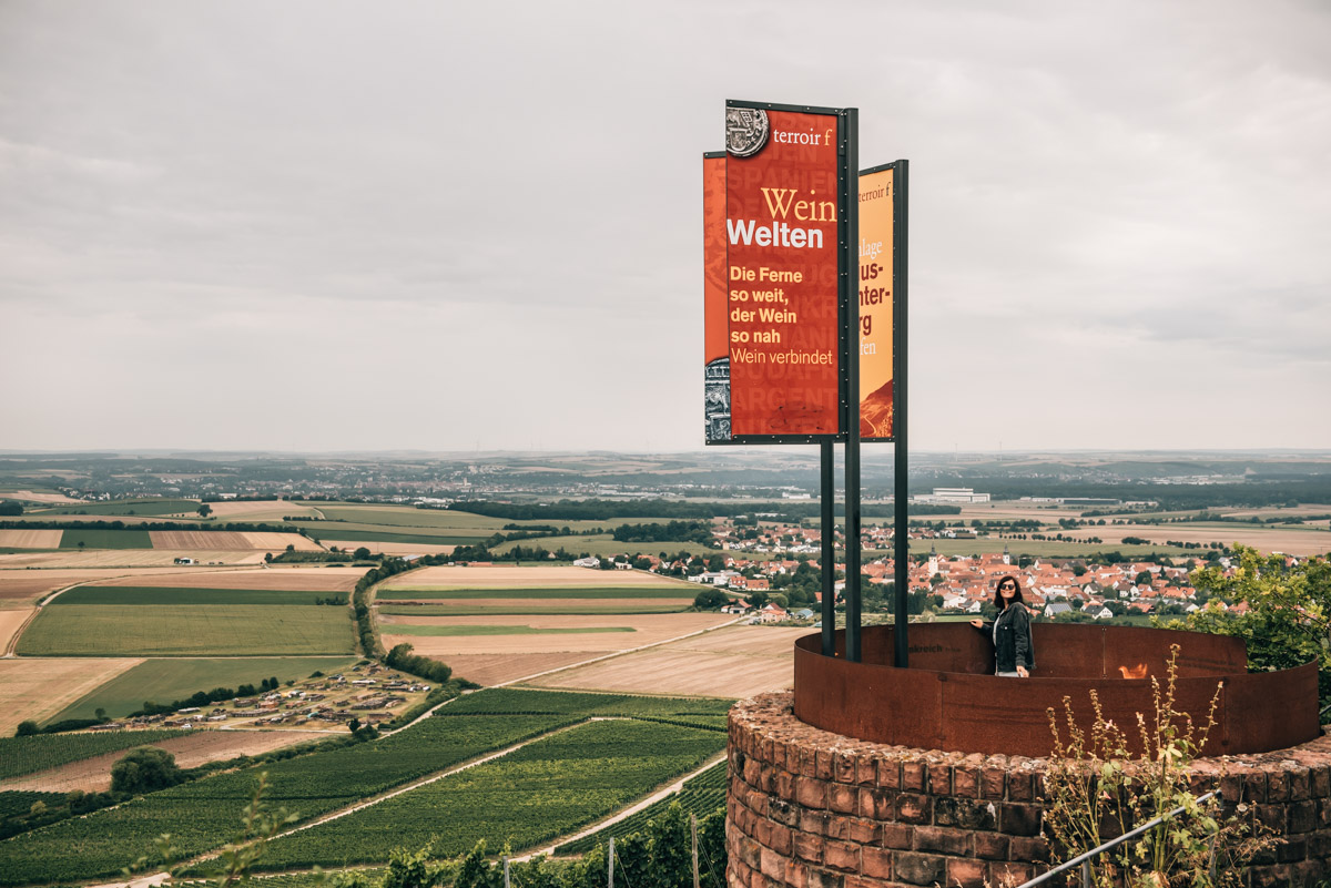 Im gesamten Weinland Franken begegnen dir sogenannte terroir-f-Punkte. Derzeit gibt es 15 – es kommen aber laufend weitere hinzu. Diese Aussichtspunkte werden als die „magischen Orte des Frankenweins“ bezeichnet. Sie befinden sich immer an besonderen Standorten, daher genießt du von den terroir-f-Punkten meist einen großartigen Ausblick.