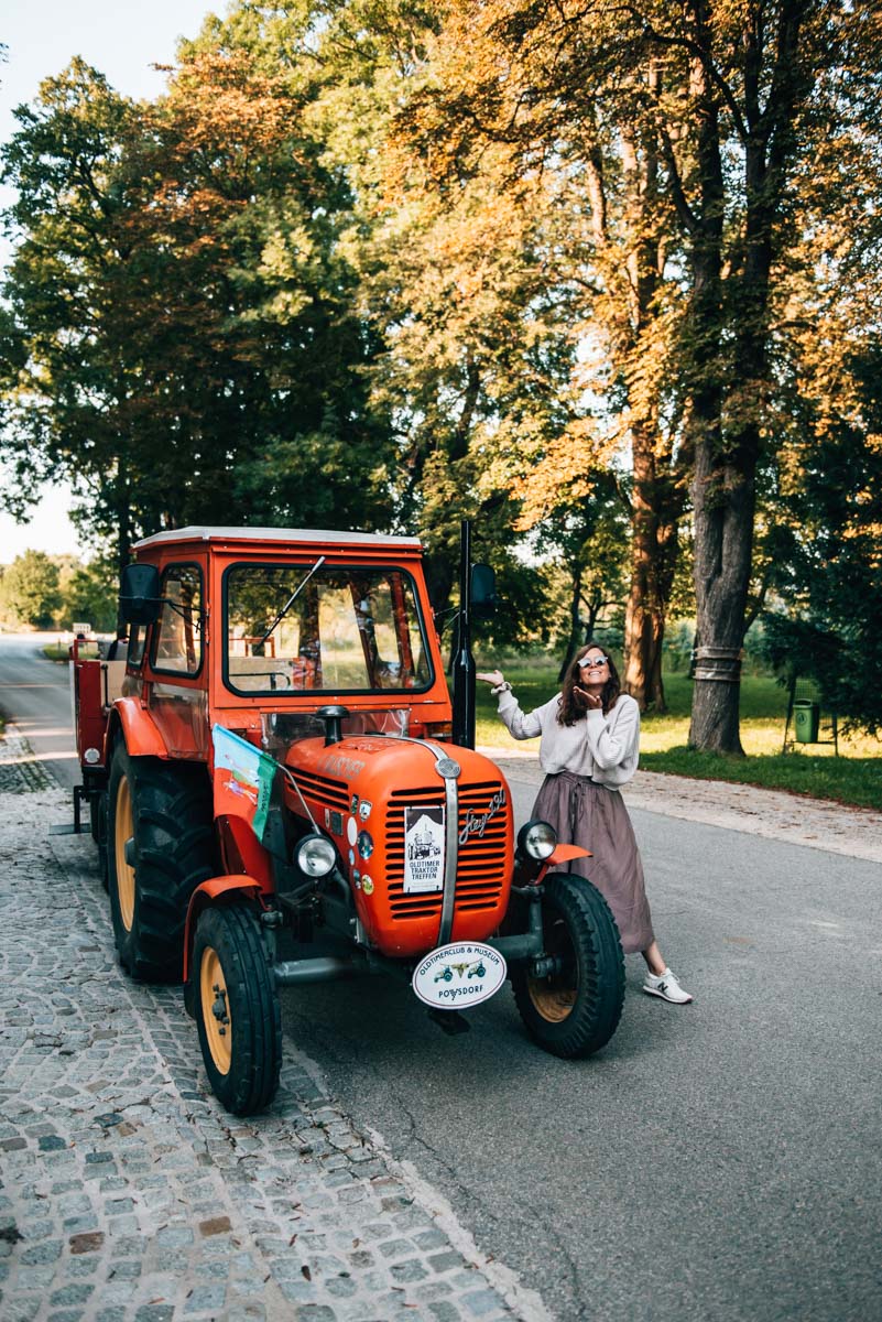In Poysdorf kannst du an einer Stadtführung der besonderen Art teilnehmen. Auf dem Anhänger eines Oldtimer-Traktors tuckerst du durch die Kellergassen und vorbei an Weinreben und lauschst in den Pausen den Worten der Stadtführerin. Ziemlich coole Sache!