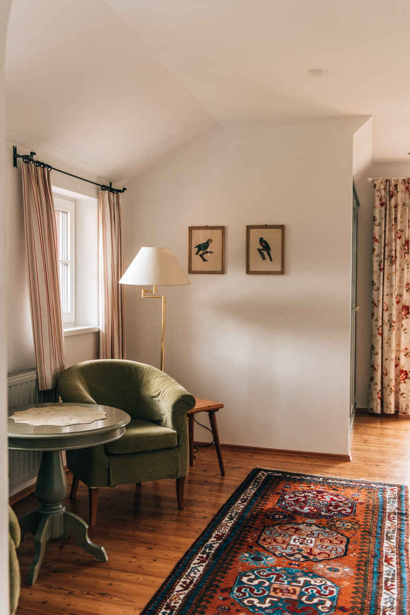 Unser Zimmer befand sich im Haupthaus mit tollem Blick auf den See. So gemütlich und traditionell – wir haben uns sehr wohlgefühlt! Wer es lieber moderner mag, der ist in den Suiten gut aufgehoben.