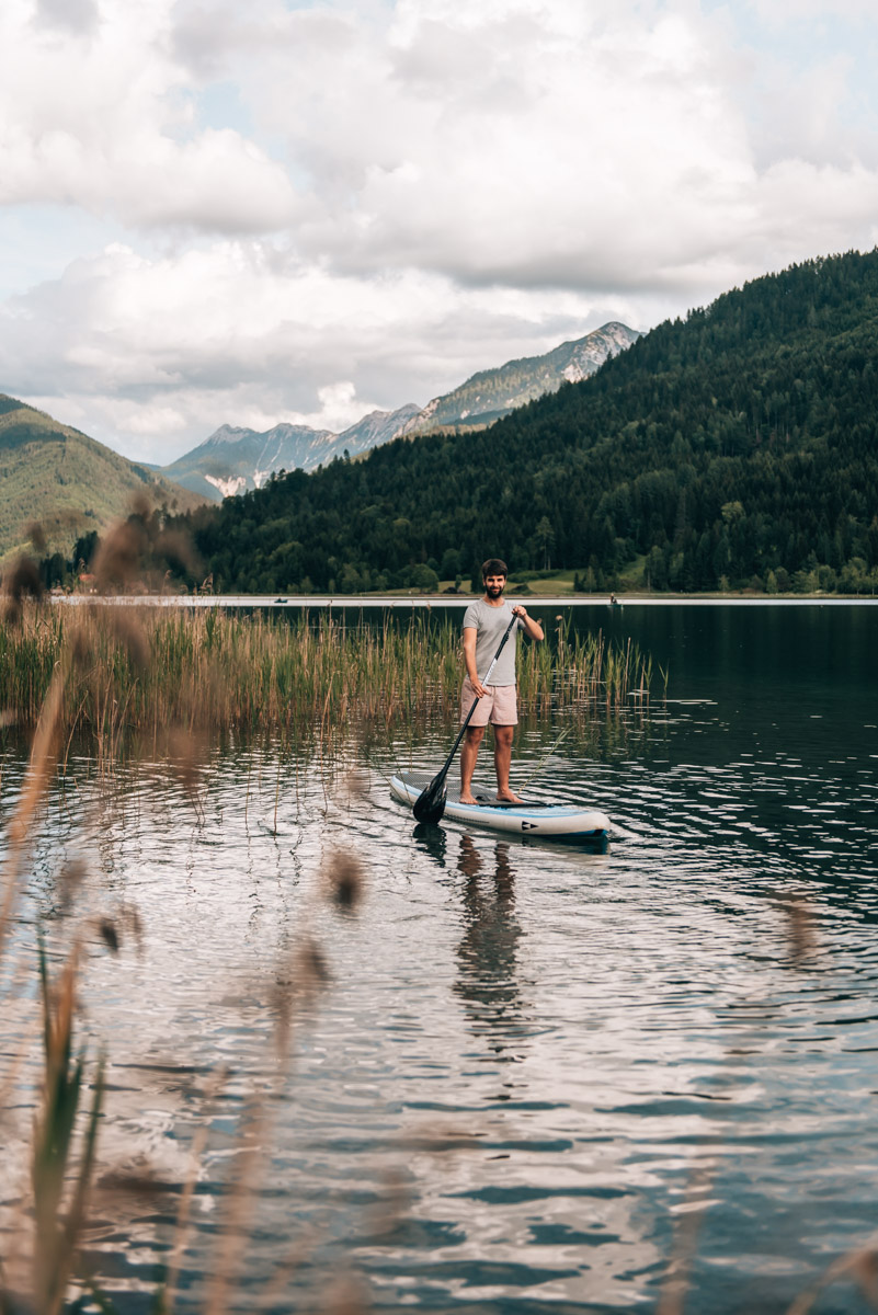 Wie man die Ruhe des Weissensees bestmöglich genießt? Wie wäre es mit einem Ausflug auf dem SUP-Board? Zugegeben: Wir haben uns ja lange gegen diesen Trend gewehrt, müssen aber zugeben, dass es kaum eine bessere Möglichkeit gibt, einen See auf entschleunigende Art und Weise zu erkunden.