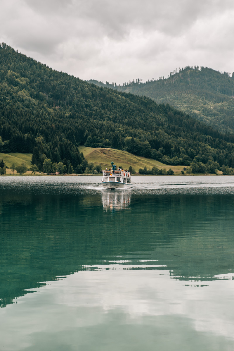 Was wir am Weissensee so sehr schätzen ist der nachhaltige Tourismus, der dort gelebt wird. Der Weissensee wurde zum Naturpark erklärt. Es führt beispielsweise keine Straße einmal rund um den See – viele Stellen kannst du ausschließlich zu Fuß erreichen. Motorboote am See sind (mit wenigen Ausnahmen) verboten. Und mehr noch: Am Weissensee gleitet Österreichs erstes Elektro-Hybrid-Schiff (die MS Alpenperle) übers Wasser.