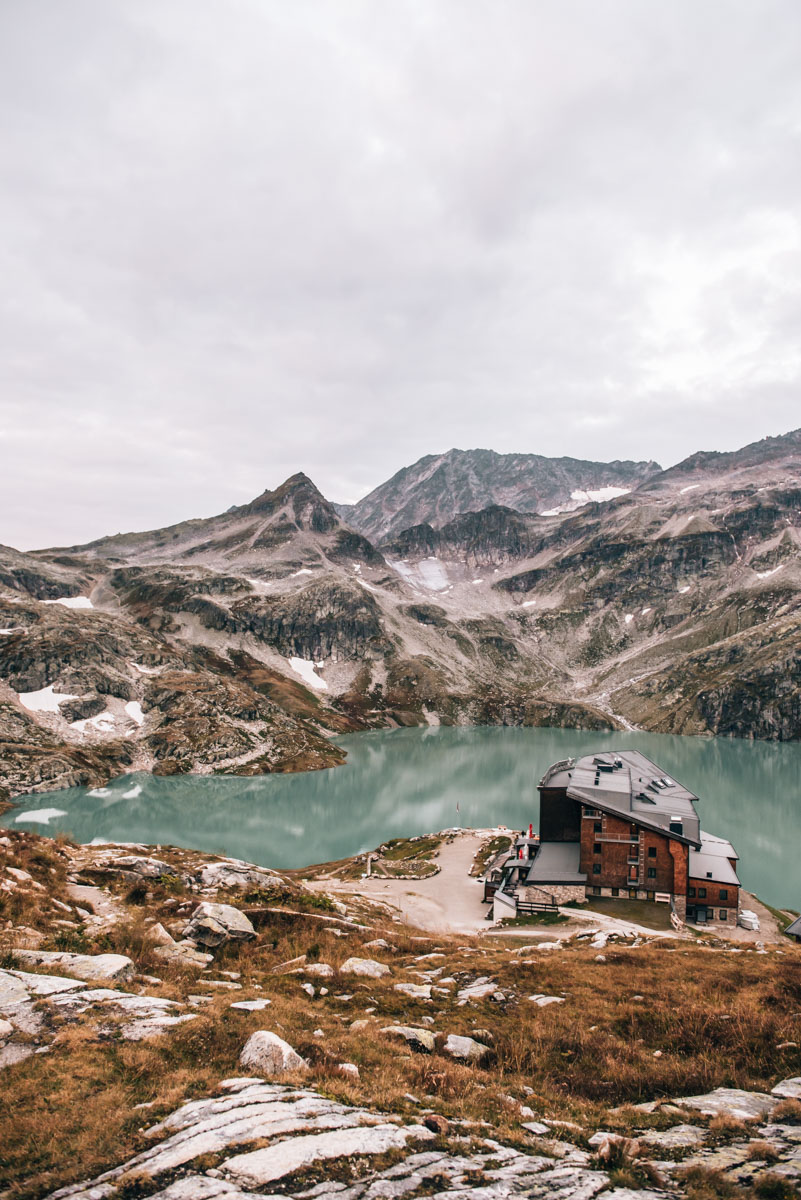 Und jetzt kommt’s noch besser: Direkt am See liegt die einzige Unterkunft weit und breit. Das Berghotel Rudolfshütte verdient allein schon für seine grandiose Lage fünf Sterne. Wenn wir jetzt erzählen, dass das Hotel für zwei Tage unser Zuhause auf Zeit war, machen wir dich vermutlich genauso neidvoll wie uns selbst – denn wenn wir die Fotos so ansehen, dann möchten wir nichts lieber als sofort zurück!