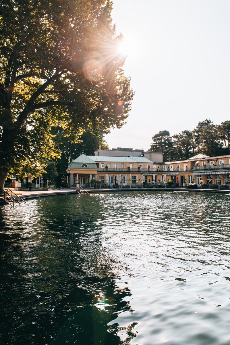 Tolle Sache: Die Parkanlage rund um die Schwimmbecken ist riesig, sodass man immer ein gemütliches Plätzchen findet. Fürs kulinarische Wohl ist ebenso gesorgt. Sehr nett sitzt man auf der Terrasse des Kabane 21 mit Blick aufs Grüne Becken. Beliebt sind auch der Eispavillon und die Milchbar.
