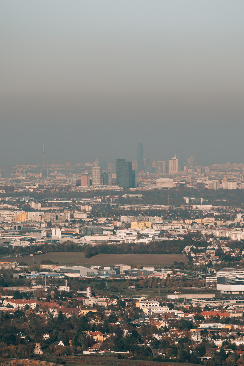 Oben angekommen, wirst du mit einem sehr schönen Ausblick belohnt. In der Ferne siehst du einige markante Bauwerke Wiens in die Höhe ragen. Die Sicht ist allerdings teilweise von Gestrüpp und Bäumen verdeckt – nur, damit du dir nicht zu viel erwartest. Kleiner Tipp: Wer gerne fotografiert, der nimmt am besten ein ordentliches Teleobjektiv mit.