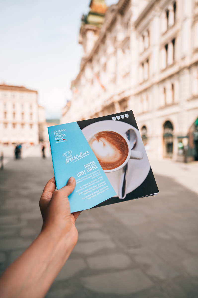 Um das Kaffeetrinken in Triest so richtig zu zelebrieren, gibt es eine ziemlich coole Sache: den Kaffeepass. Du kannst den Pass in der Touristeninformation nahe der Piazza dell’Unità d’Italia (oder auch am Flughafen Triest und in manchen Hotels) um sieben Euro kaufen.