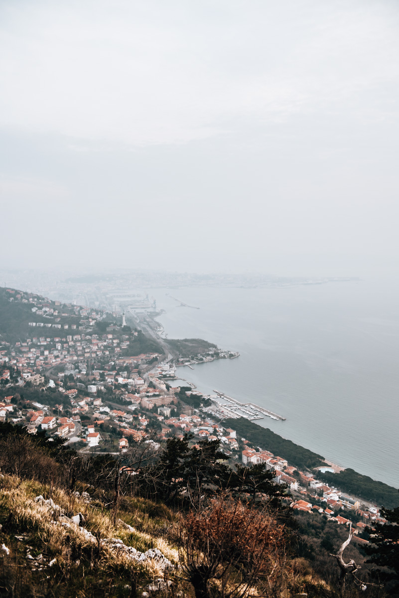 Von der Wallfahrtskirche auf dem 330 Meter hohen Monte Grisa genießt du bei gutem Wetter einen wunderschönen Fernblick Richtung Triest. Leider war die Sicht bei unserem Besuch ziemlich getrübt.