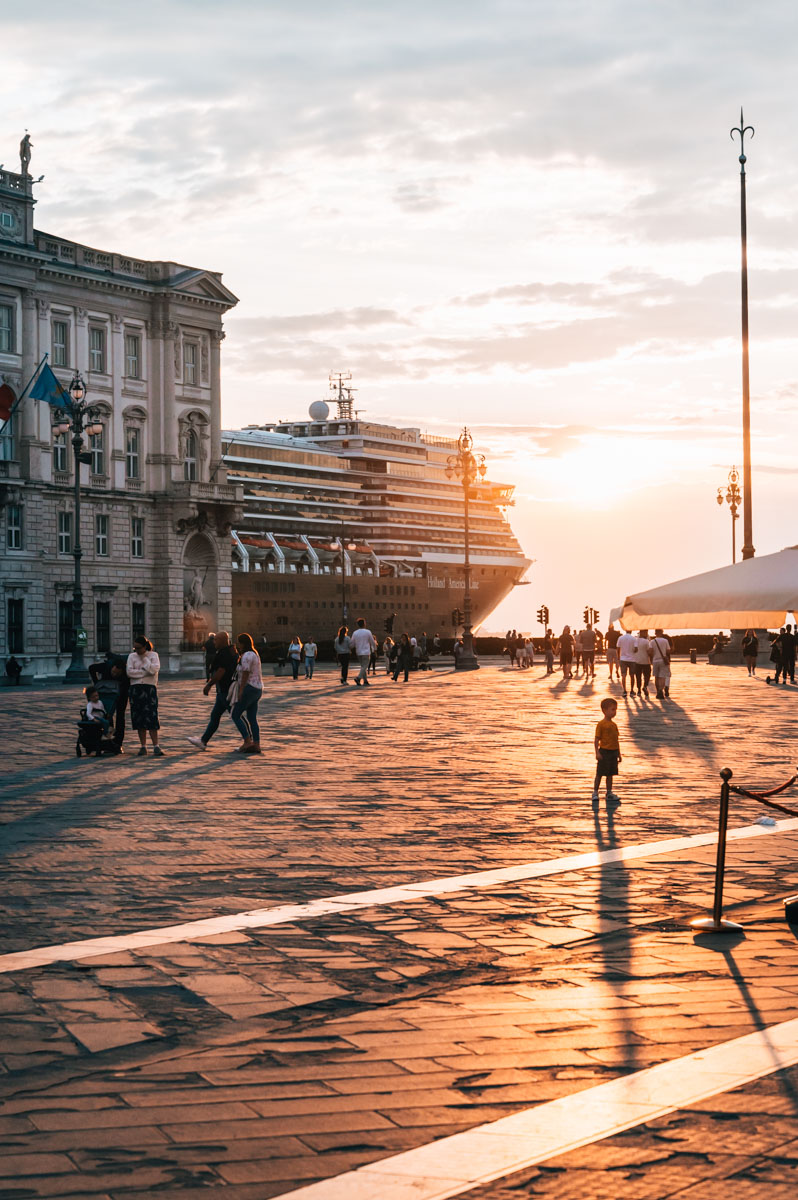 Abends, wenn die Sonne langsam im Meer untergeht, ist eindeutig der beste Zeitpunkt für einen Besuch. Dann kannst du dabei zusehen, wie Triest in ein wunderschönes Sonnenuntergangslicht getaucht wird.