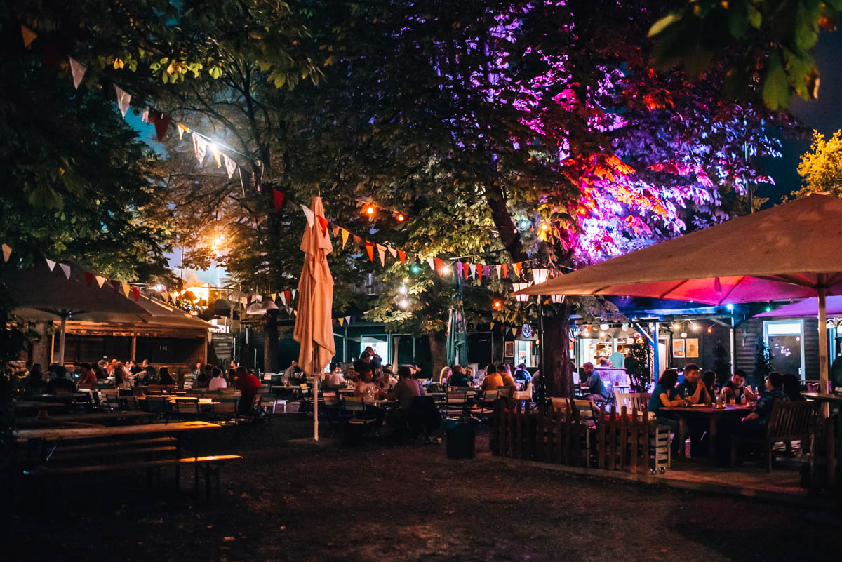 Der etwas andere Biergarten: Draußen genießt man sein Getränk unter Kastanienbäumen und Fähnchenketten, drinnen im Nachtclub wird zu Technomusik getanzt. Die Waldschänke Dornheim gibt es zwar erst seit Mai 2016, doch sie ist aus der Würzburger Kneipenszene nicht mehr wegzudenken. Eine richtig coole Location, wie wir finden, die auf jeden Fall einen Besuch wert ist.
