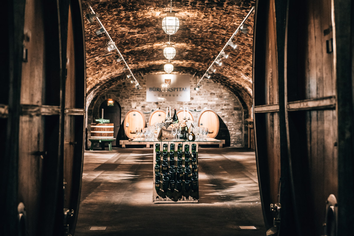 Wir lehnen uns jetzt einmal aus dem Fenster und behaupten: Der vermutlich fotogenste Weinkeller Würzburgs befindet sich in den Kellergängen unterhalb des Weinguts Juliusspital. Ganz recht: Spital. Denn das Weingut Juliusspital gehört zur gleichnamigen Stiftung. Die Erträge des Weinguts fließen also in die Stiftung und von dort wiederum ins benachbarte Krankenhaus.