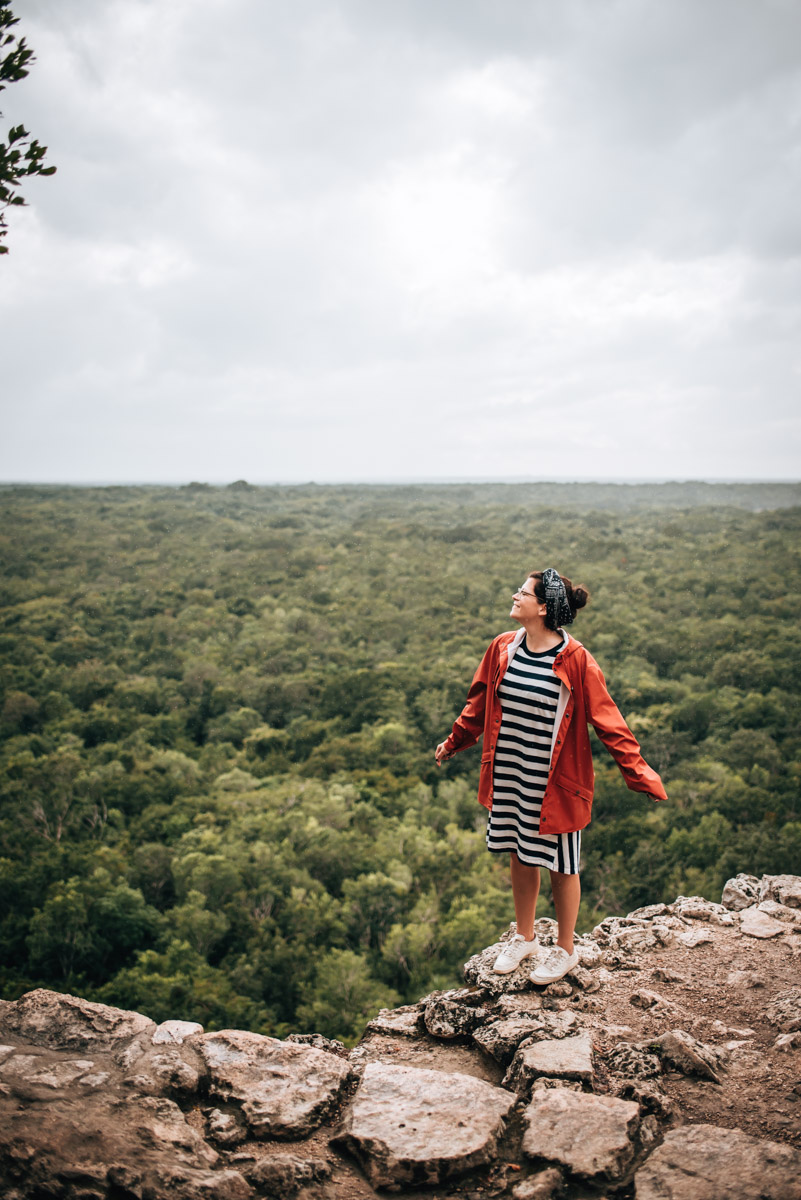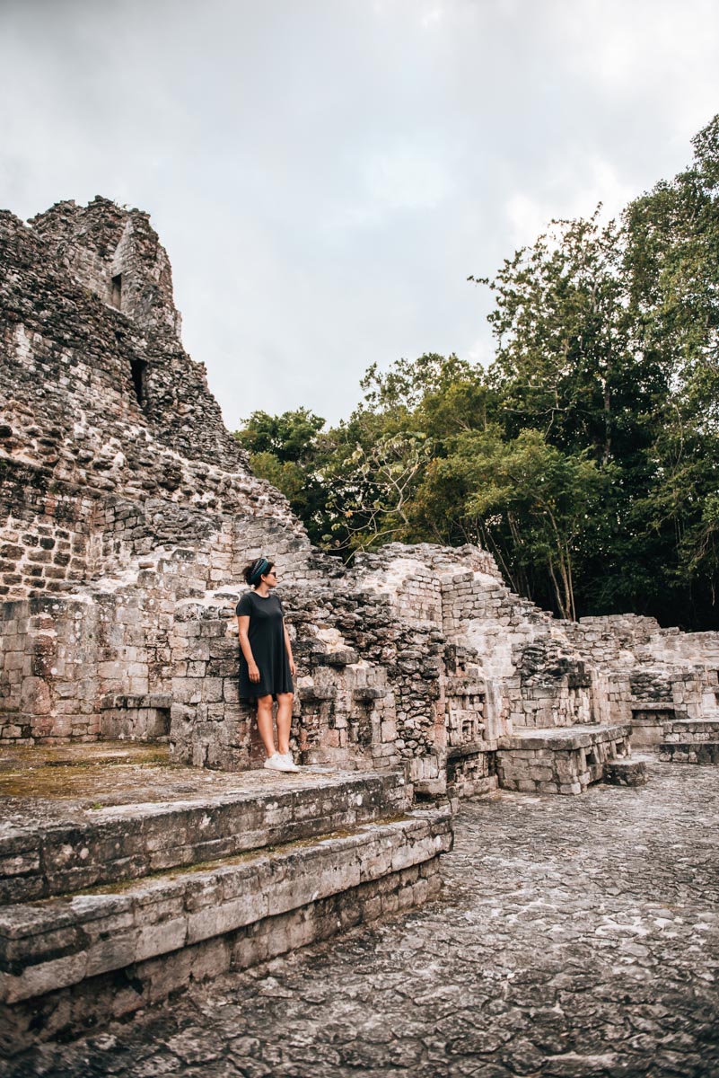Es gilt bei Maya-Ruinen keine Kleiderordnung wie etwa bei den buddhistischen Tempeln von Bagan. Wir würden dennoch empfehlen, die Schultern bedeckt zu halten oder zumindest nicht mit der Sonnencreme zu geizen, denn die Mittagssonne ist ziemlich erbarmungslos.