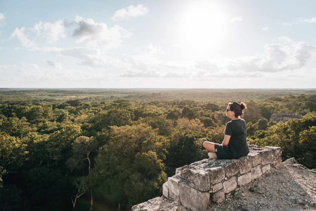 In Calakmul dürfen die Ruinen bestiegen werden. Der Fernblick auf den Dschungel von der imposanten, 45 Meter hohen Hauptpyramide (Estructura II) ist eines dieser Reiseerlebnisse, das einem für immer in Erinnerung bleibt.